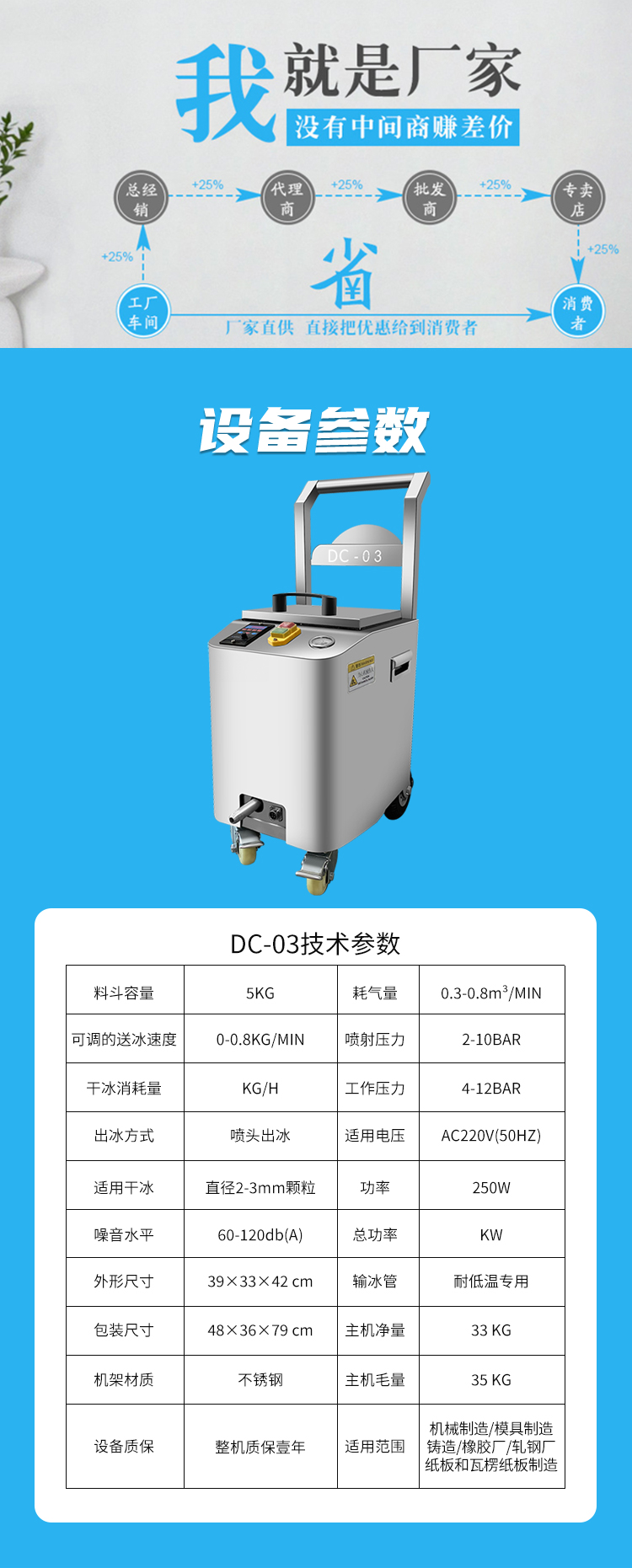 3. 進(jìn)氣壓力,干冰用量可調(diào)
