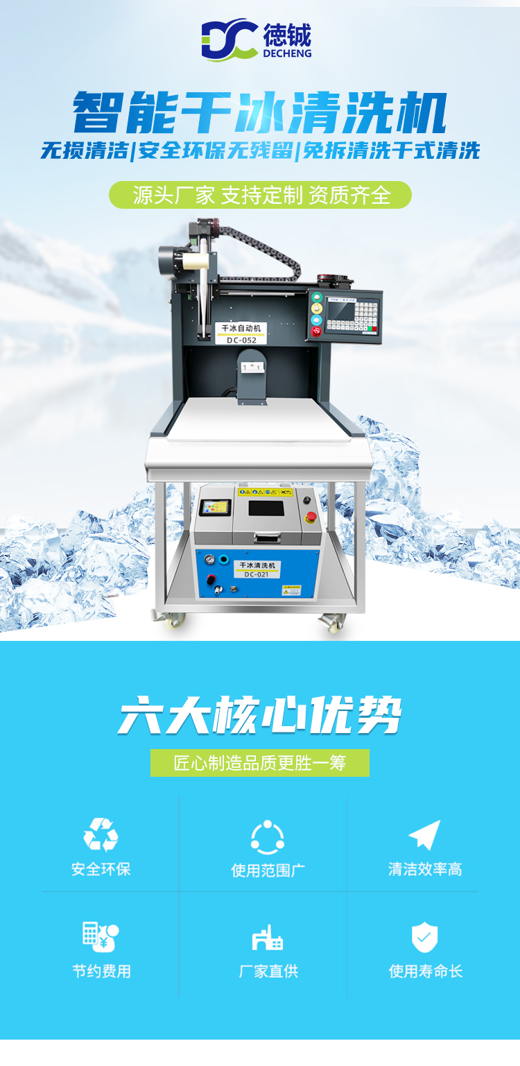 德城傾心研發的PCBA干冰清洗機,結合自動化操作系統,配備可視化清洗窗口實時監控清洗效果。一鍵開啟產品表面清洗新視角。